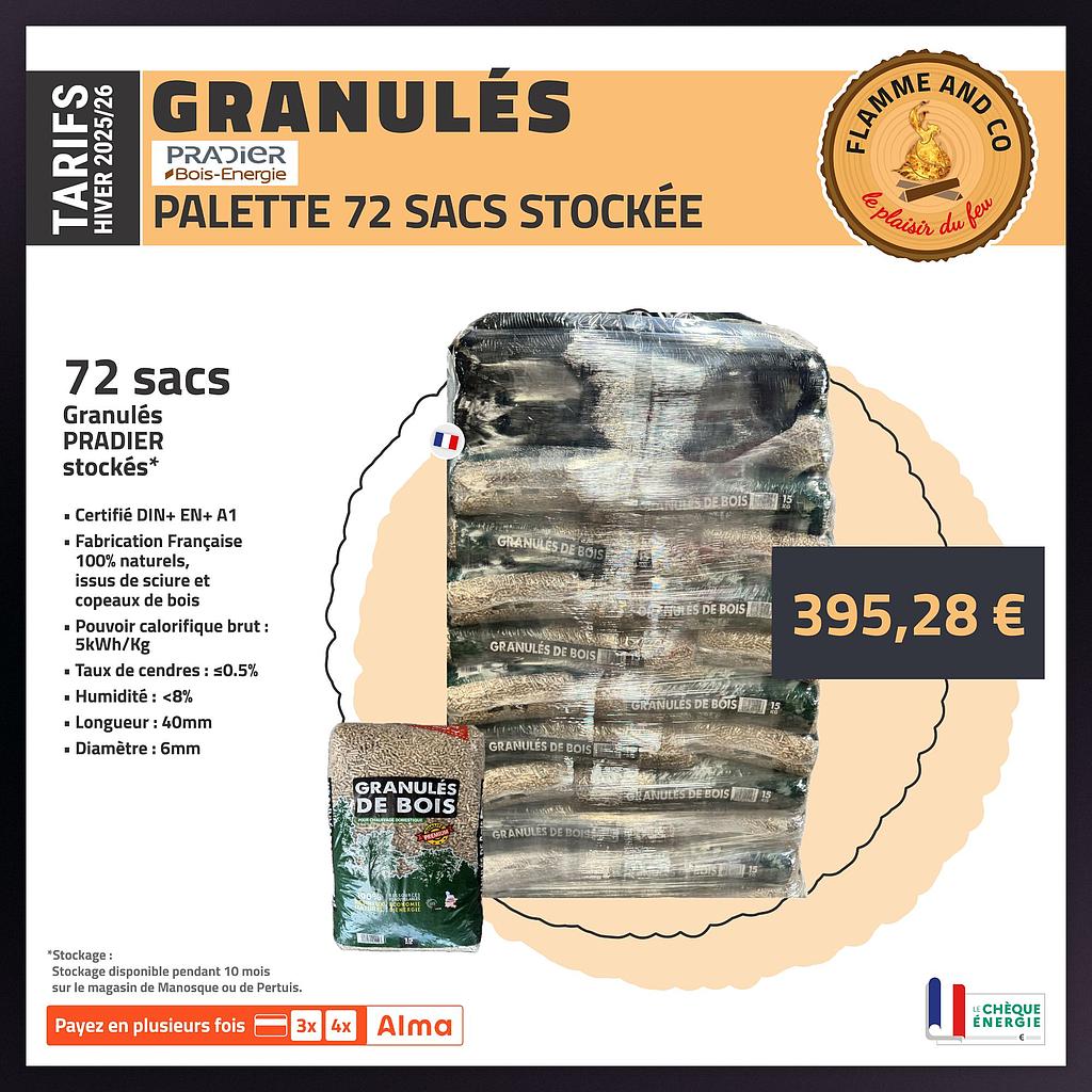 72 sacs granulés DIN+ A1 Pradier France à emporter